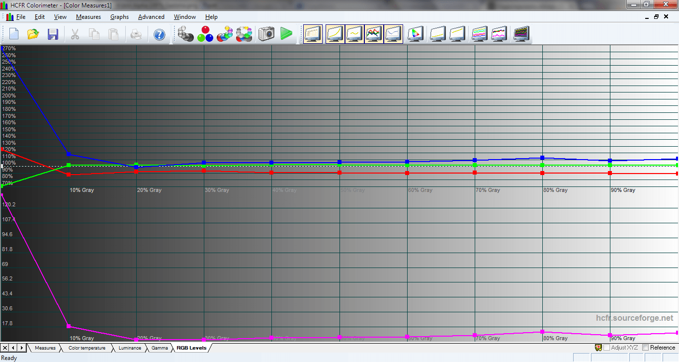 В смартфоне установлен IPS-дисплей диагональю 4,7-дюйма и разрешением 1280 на 720 точек. Его минимальная яркость равна 40 кд/м2, средняя – 230 кд/м2, максимальная – 325 кд/м2. Судя по качеству заводской калибровки, используется матрица достаточно высокого качества, большинство параметров близки к эталонным значениям.