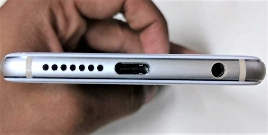 На верхней грани корпуса находится аудио-разъем 3,5-мм, а также микрофон-шумодав. Снизу же — micro-USB в окружении отверстий динамика вызова, внутри которых также похоже спрятан и основной микрофон.