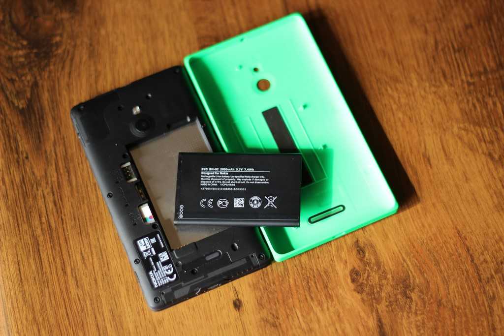 Под съёмной панелью находится съёмный аккумулятор, слоты для microSIM-карт и microSD.