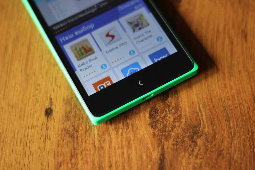 Но одно нестандартное решение во внешнем виде Nokia X все-таки есть. В компании решили сократить и количество сенсорных клавиш управления, очевидно стремясь выделить свое устройство в ряду Android-смартфонов. В итоге, на лицевой панели Nokia X находится единственная сенсорная клавиша, которая отвечает за функции возврата назад в приложениях и за перелистывание экранов в основном меню системы, дублируя таким образом управление жестами. При длительном нажатии она позволяет выйти на главный экран системы. 3-мегапиксельная камера Nokia X размещена на задней панели, кроме нее там присутствует небольшой выход для основного динамика. Под съемной крышкой скрывается аккумулятор, два разъема для SIM-карт формата Micro и один слот для карты памяти microSD. Качество сборки смартфона, несмотря на разборную конструкцию, на высоте — крышка закрепляется на корпусе очень плотно, охватывая его со всех сторон, а само устройство производит впечатление очень крепкого, совершенно без люфтов и прогибов панелей.