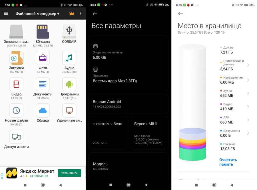 В зависимости от размеров оперативной памяти (6 ГБ или 8 ГБ) на хранилище файлов может отводиться 64 ГБ, 128 ГБ или 256 ГБ быстрой флэш-памяти типа UFS 2.2, которая отличается от UFS 2.1 увеличенной на 100% скоростью последовательной записи. На момент тестирования в российской рознице для Redmi Note 10 Pro была доступна конфигурация 8 ГБ/128 ГБ, а вот к нам на тест попал аппарат 6 ГБ/128 ГБ. Рост хранилища в Redmi Note 10 Pro предлагается обеспечить за счет установки в слот на отдельное место карты памяти microSD/HC/XC (до 512 ГБ). Благодаря поддержке технологии USB-OTG, к смартфону допускается подключать еще и обычную флэшку.