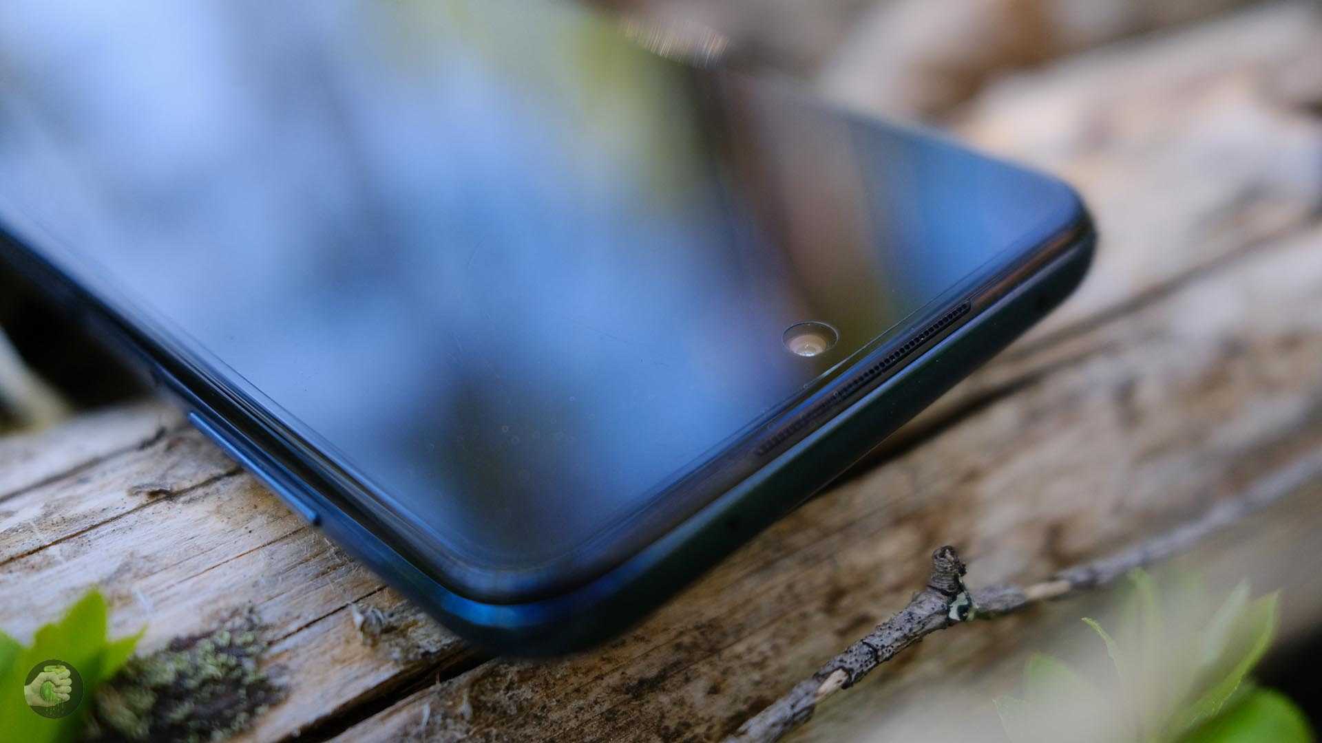 Передняя сторона меня тоже привлекла большим процентом занимаемой площади дисплеем. Боковые рамки реально узкие для бюджетного устройства. Верхнее пространство, где располагается разговорный динамик с фронтальной камерой также сильно заужен. В аналогичных устройствах от других фирм такого не встретить. Под экраном расположились классические три сенсорные кнопки.