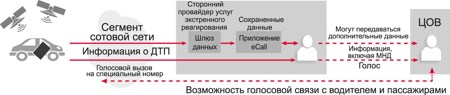 Рис. 3. Схема оказания услуги экстренного реагирования сторонним провайдером согласно документу CEN TC278 WG15