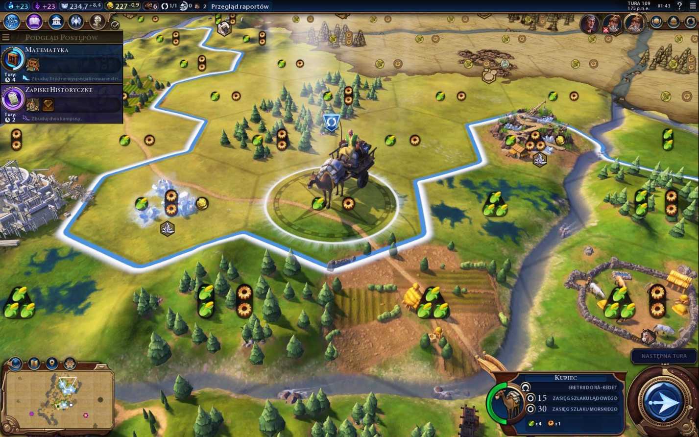 Разобравшись с ближайшими варварами и соседней цивилизацией (если мы столкнулись с такой ситуацией), нужно подумать об эксплуатации окружающих полей для увеличения доходов государства. Для этого вам следует нанять строителей — они позволяют вам сразу улучшать выбранное поле, но вы можете использовать их только три раза (лимит можно увеличить на более поздней стадии игры). Прежде всего, вы должны улучшить поля с помощью ресурсов, а затем поставить хотя бы одну ферму на реке, чтобы избежать голод.