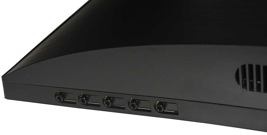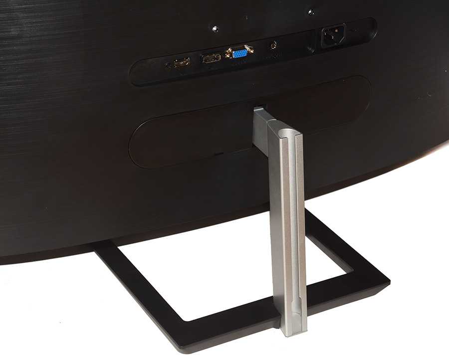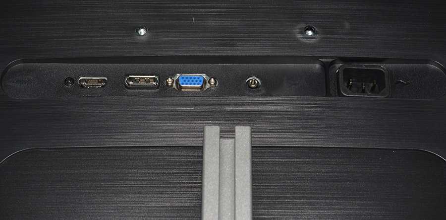 Задняя панель выполнена из черного матового пластика, стилизованного под металл. Несмотря на отсутствие глянца, поверхность охотно собирает отпечатки пальцев. Поэтому без необходимости монитор лучше не трогать.