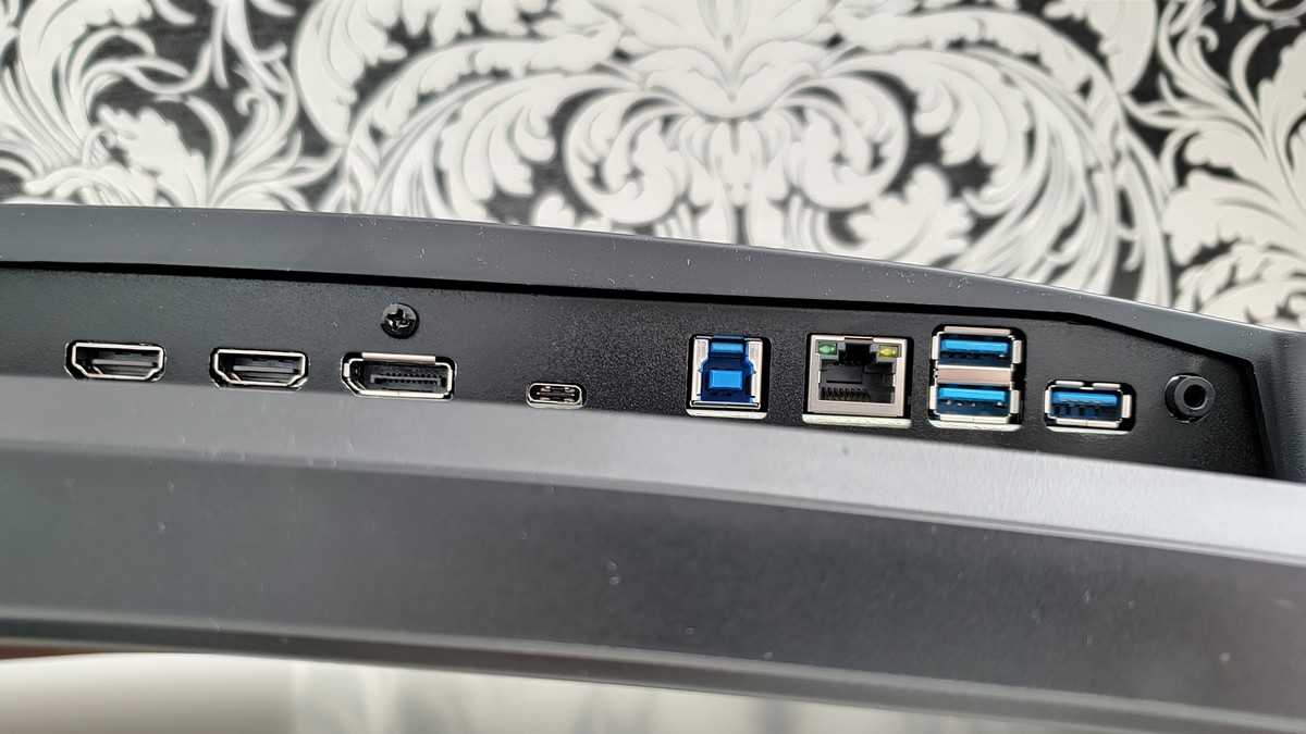 Что касается подключения, Philips Brilliance 499P9H предлагает массу портов на выбор: DisplayPort 1.4, два HDMI 2.0b. А также USB-концентратор концентратор на три USB Type-A и один Type-C, как для подключения периферии, накопителей, так и для зарядки мобильных устройств. Есть даже порт RJ-45, а также 3,5-мм аудиопорт для акустики.