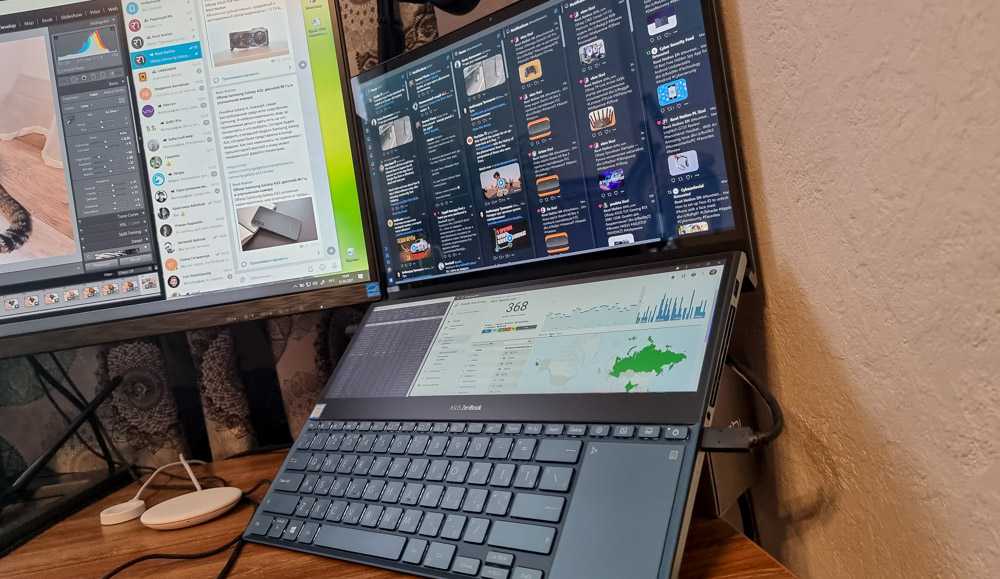 Что следует из всего вышеперечисленного набора портов в практическом смысле? Лично я подключаю свой ноутбук ASUS ZenBook Pro Duo UX581GV к монитору ОДНИМ кабелем к порту USB Type-C Gen2, что обеспечивает передачу изображения, звука, подключение к проводному гигабитному интернету и всем периферийным устройствам!