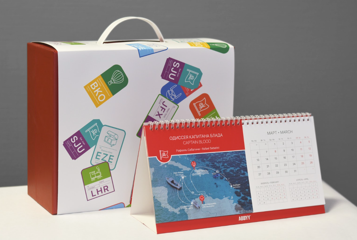 В этом году ABBYY предложили партнерам и клиентам отправиться в путешествие по маршрутам любимых литературных героев: Синдбада-морехода, Врунгеля, Филеаса Фогга, Паганеля, Сани Григорьева и других. Чтобы составить карты их приключений, известные произведения были проанализированы с помощью технологий компании. Все пути и тропы великих путешественников теперь есть в специальном календаре.