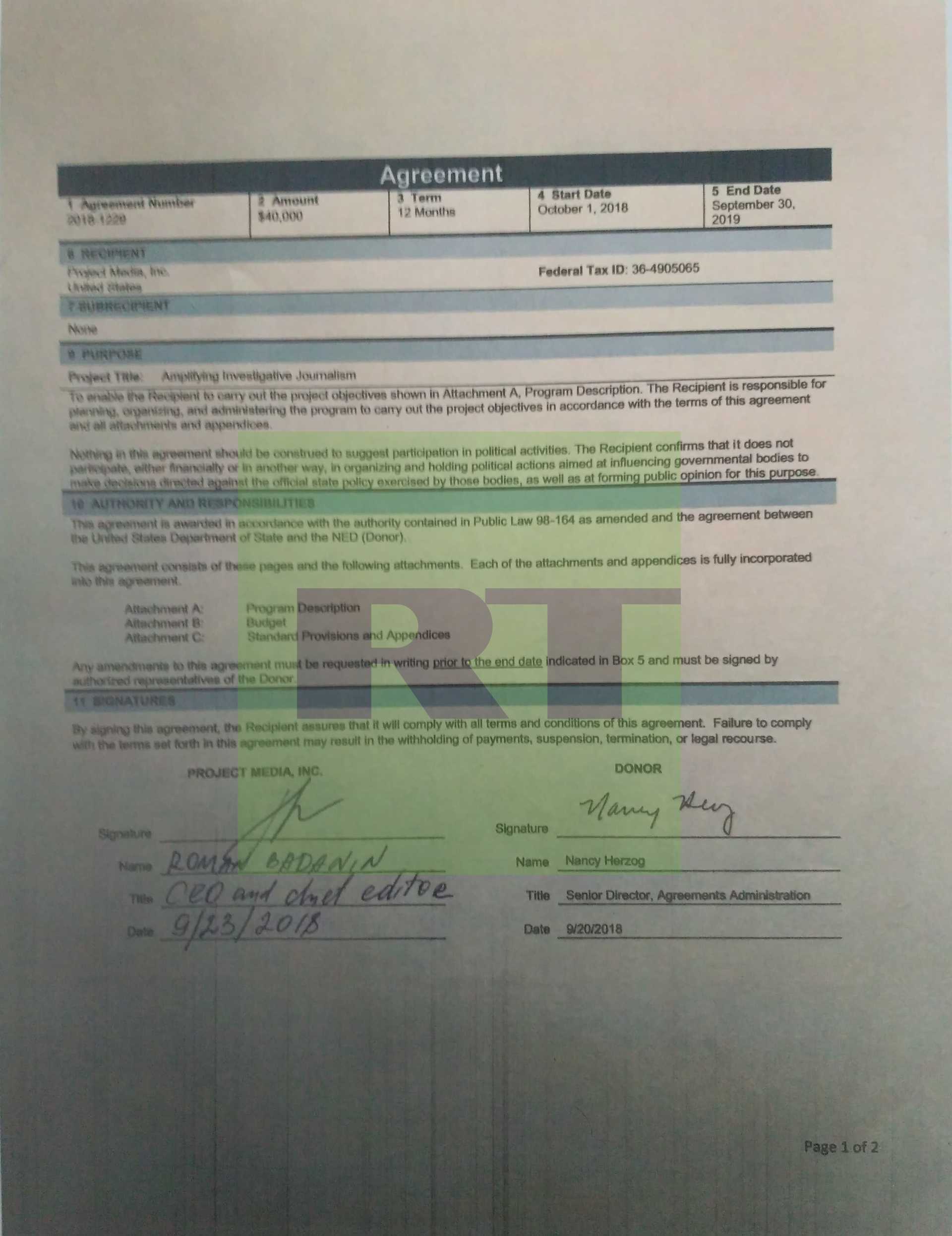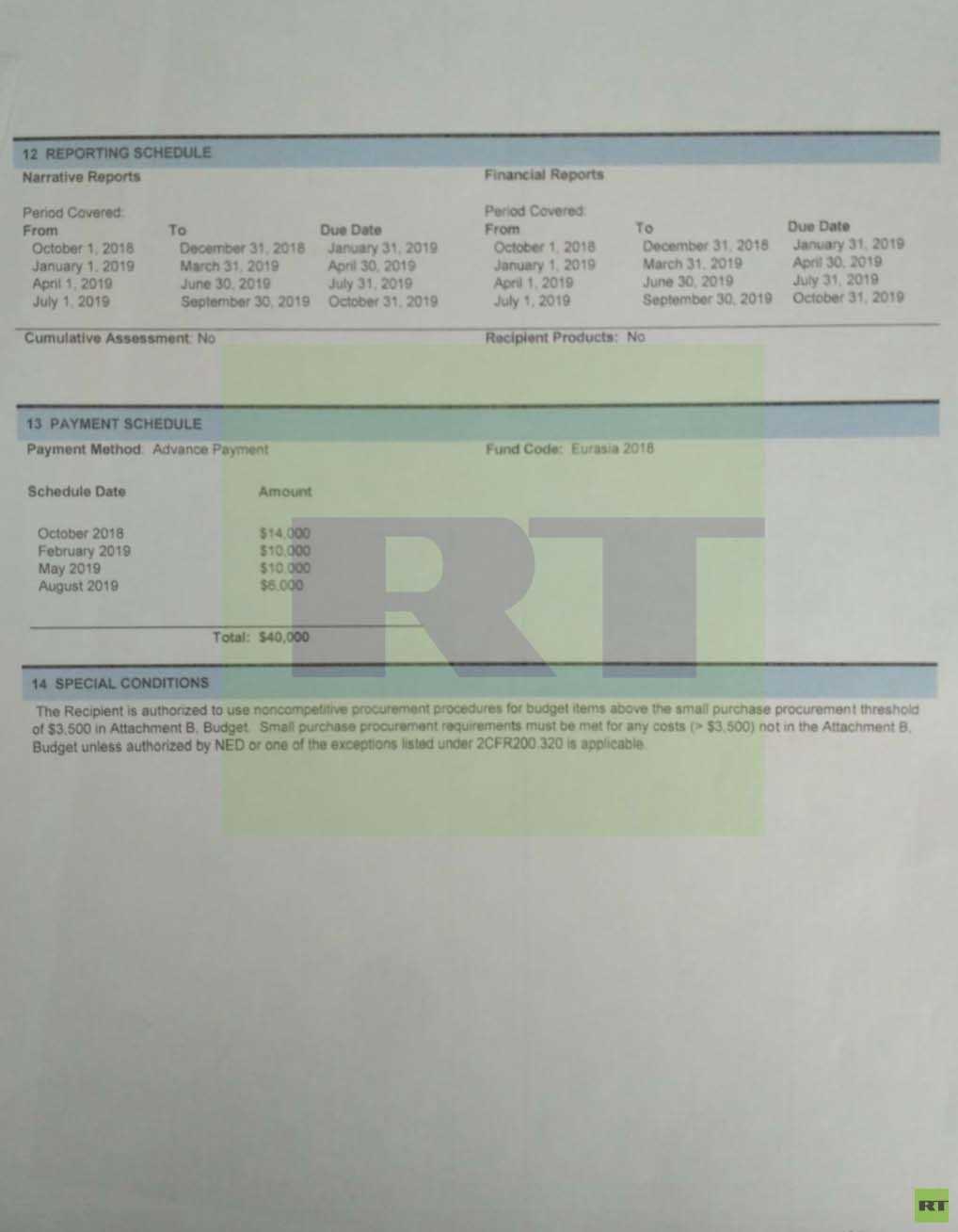 Хотя NED выделил меньше всего денег из известных RT спонсоров, он предъявил при этом самые жёсткие требования к Баданину по отчётности.