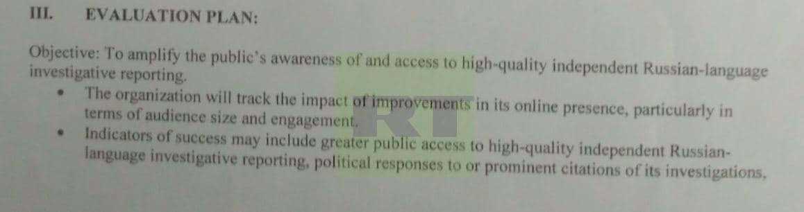 — К показателям успеха могут относиться расширение доступа общественности к высококачественным независимым журналистским расследованиям на русском языке, отклик со стороны политиков на расследования или привлёкшие широкое внимание ссылки на них, более активное обсуждение и информированность об альтернативных точках зрения, отличающихся от продвигаемого властями дезинформационного и пропагандистского дискурса»