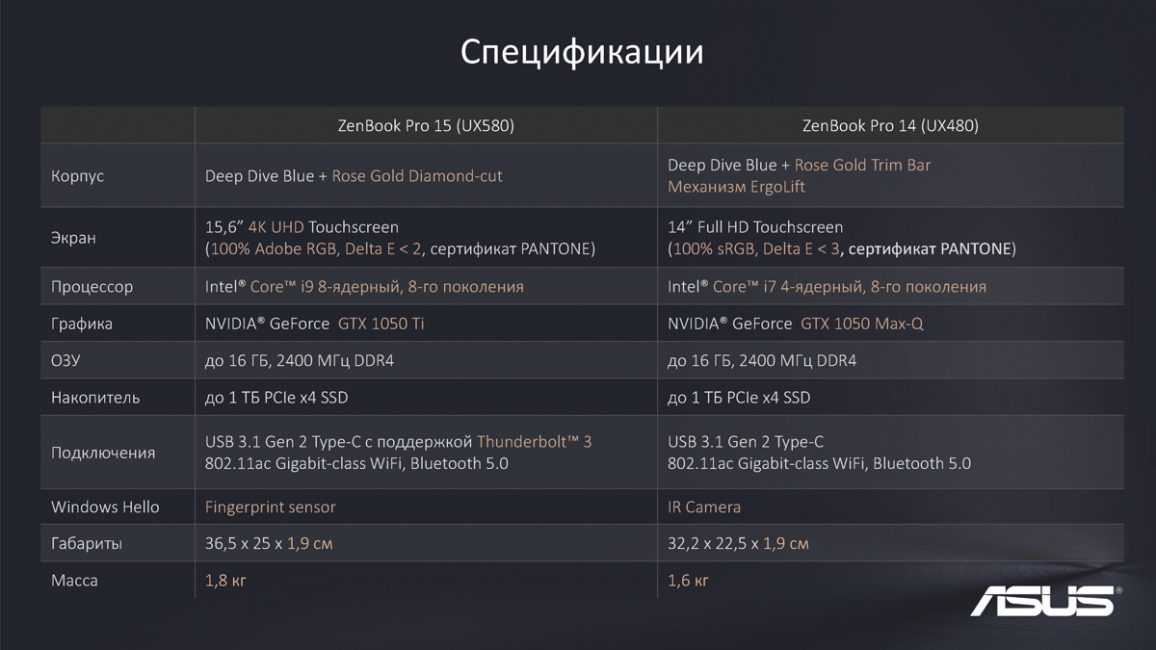 Мой личный фаворит — ZenBook Pro UX550. В основном потому, что данный ультрабук пакует в миниатюрном корпусе с концентрической шлифовкой начинку, почти аналогичную моему текущему десктопу.