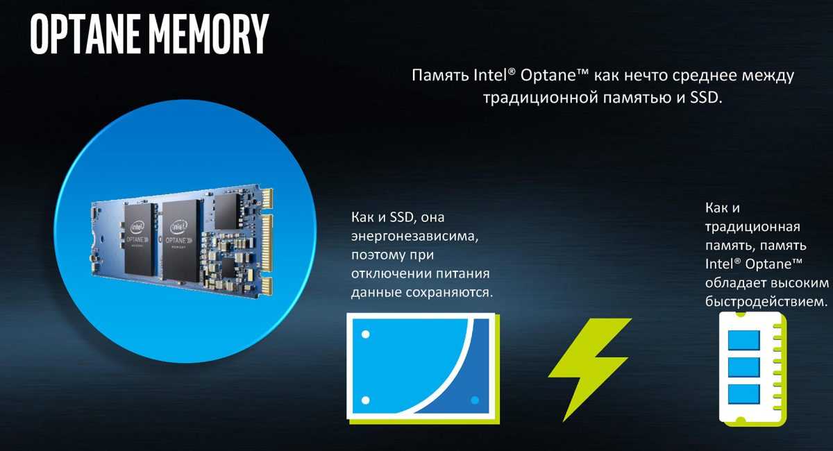 С неё и начнём. Optane является ускорителем работы системы, супер-быстрым твердотельным накопителем, работающим в роли кэша системы. Во время первых двух-трёх сессий работы с ОС происходит анализ самых популярных пользовательских приложений, и система к следующему разу помещает в Optane самые часто используемые файлы и программы для ускорения их запуска.