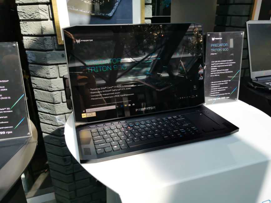 Ну а модель Predator Triton 900 — и вовсе может считаться геймерским планшетом, поскольку сенсорный 4К IPS-дисплей диагональю 17 дюйма у этого чудовища находится на особом креплении и может поворачиваться на 360 градусов, его можно приближать к клавиатуре для более удобного геймплея, или полностью складывать (осталось понять — зачем).