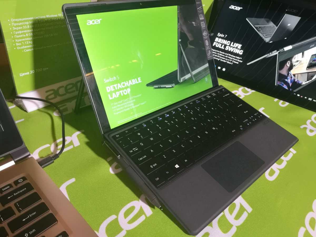 Из устройств 2-в-1, моих любимых трансформеров с сенсорным экраном, новинками являются только Acer Switch 3 и Switch 5. Устройства похожи по дизайну, у обоих есть патентованная выдвижная подставка, поддержка Windows Ink, но более дорогая пятая модель (призёр на IFA 2017, между прочем) оснащена сканером отпечатков пальцев прямо на кнопке включения и процессором Intel 7 поколения, а также системой охлаждения LiquidLoop — патентованной, разумеется. Модель 3 оснащена процессором послабее, но клавиатура у неё с подсветкой, что отдельно радует. Стоимость Switch 3 — от ₴14000, Switch 5 — от ₴31000.