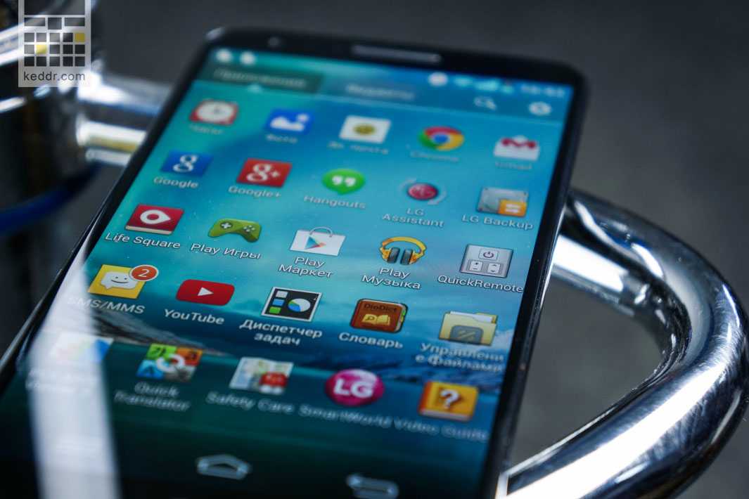 Не нужно иметь широкие познания в индустрии смартфонов, чтобы узнать модель, вдохновившую дизайнеров LG. Если бы не скромный поясняющий логотип под дисплеем, флагман LG можно было бы легко принять за очередную модификацию Galaxy S4. Похоже, в компании упорно пытались понять причины высокого спроса конкурирующего флагмана с неказистым корпусом, логики в этом успехе не нашли, но решили на всякий случай повторить мотивы дизайна конкурента. Впрочем, не повторить, а превзойти. Потому что дисплей при близких к Galaxy S4 размерах корпуса подрос до 5,2 дюймов, а боковые рамки стали необычайно, ювелирно тонкими. И пусть многих раздражают неумолимо растущие диагонали флагманов — при относительной «лопатистости» покупатель получает поистине огромную площадь для электронных развлечений.