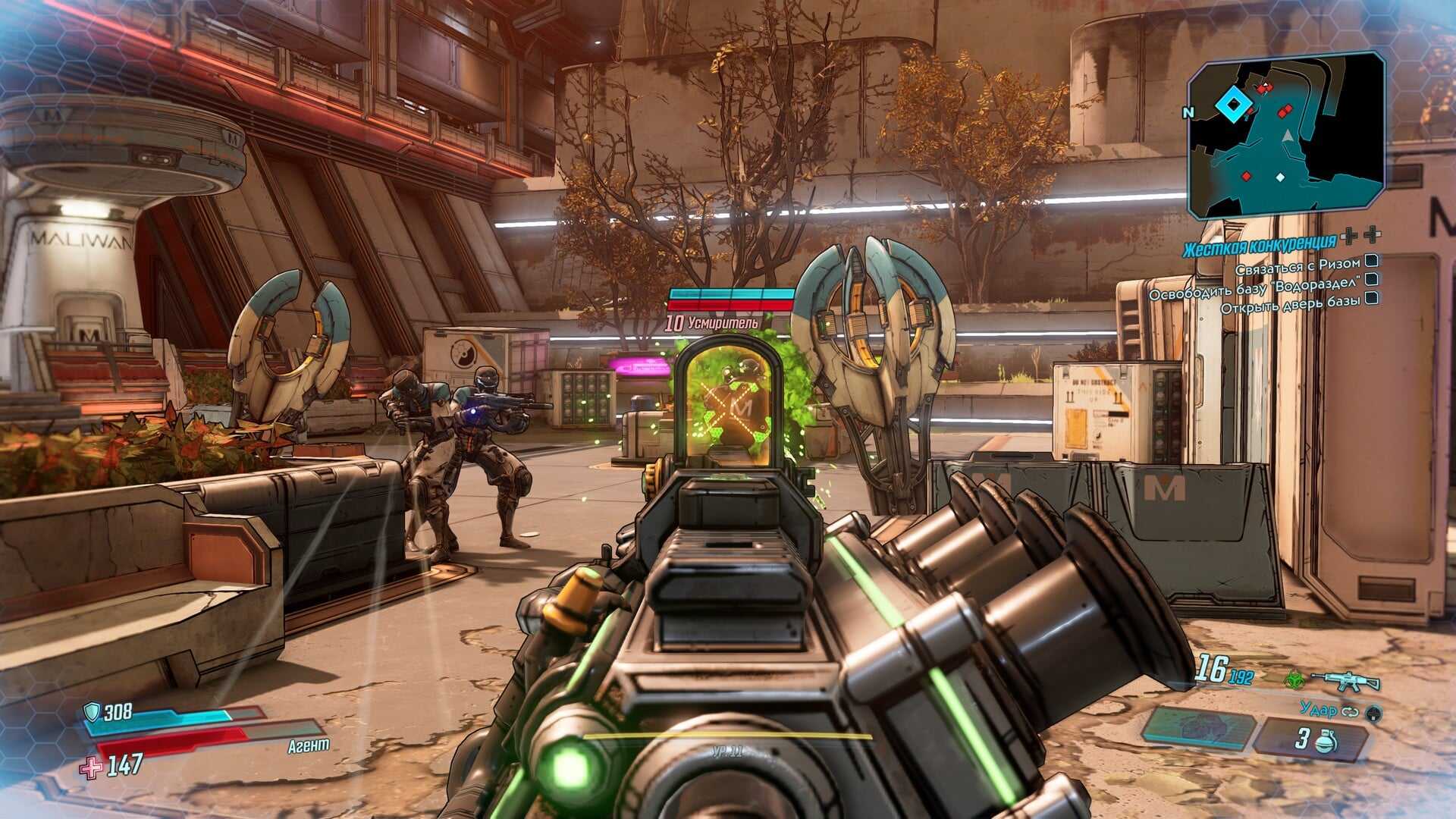 Можно сказать, что от этого локации стали разнообразнее: пустынная Пандора сильно отличается от миролюбивых пейзажей Афины и киберпанковых городов Прометеи, как и фауна этих планет. Тем не менее на каждой из них вам предстоит заниматься одним и тем же, расстреливать по большей части все тех же вояк корпорации «Маливан» и фанатиков Детей хранилища, зачищать те же маркеры на карте.