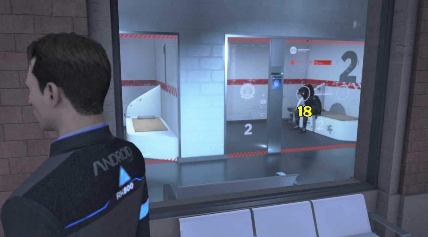 Глава начнется с неудачной попытки выслушать девианта Хэнка. У вас, как у Коннора, будет возможность поговорить с убийцей и получить от него ценную информацию. Когда главный герой войдет в комнату для допросов, вы возьмете его под контроль.