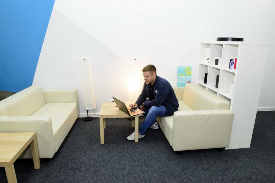 В каждом кабинете есть уголки для переговоров или отдыха — там стоят удобные кресла,небольшие диваны,пуфики и низкие столики. В любой момент сотрудники могут уйти туда с ноутбуком со своего рабочего места,чтобы сменить обстановку,переключиться. Либо взять чашку чая и расслабиться.