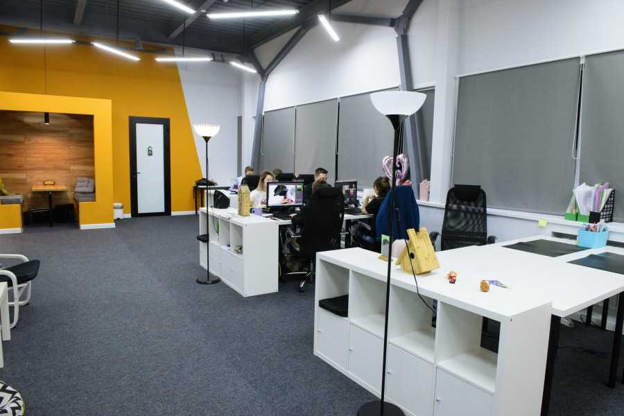 Офис занимает целый одноэтажный корпус нового здания. Его площадь — 650 кв. метров.
