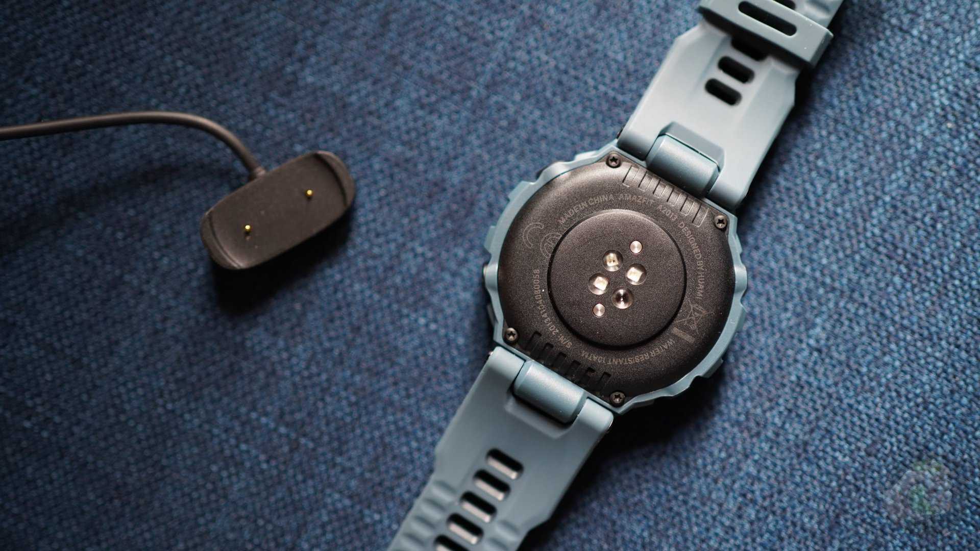 Магнитная зарядка надёжно фиксируется на тыльной части корпуса часов и держится крепко. Блока питания, как обычно, в коробке нет, но годится любой адаптер с разъёмом USB-A. С 0 до 100 % часы зарядились почти за 2 часа.