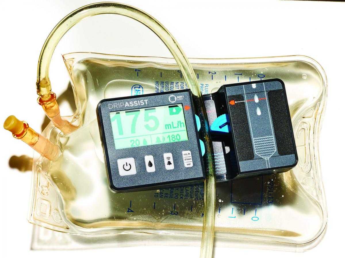 В развивающихся странах или, например, во время военных действий медсестры часто вынуждены при внутривенной терапии внимательно считать буквально по каплям, с какой скоростью проходит жидкость в вену. Специальные инфузионные помпы, обычно применяемые в современных больницах, дорогие, большие по размерам и требуют наличия электричества. Новый DripAssist — это компактный инфузионный монитор, который работает от одной батарейки AA. Закрепляемое на трубке непосредственно рядом с мешком с жидкостью, это устройство контролирует поток с достаточной точностью. Причем стоит оно лишь малую долю от цены стандартной больничной системы — $395.