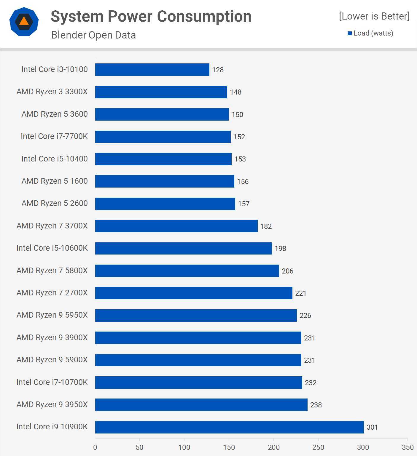 Также стоит отметить, что в этом тесте 5800X был на 16% быстрее, чем 3700X, поэтому увеличение общей мощности системы на 13% по-прежнему является очень хорошим показателем эффективности. Это также на 30 Вт меньше, чем у Intel 10700K.