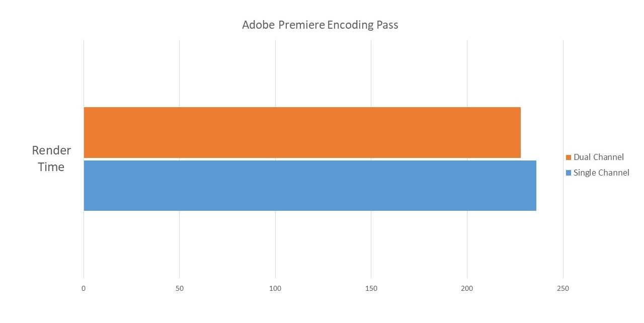 For video editing, Adobe Premiere is one of the most demanding software out there. In our benchmarking test, we found that the Dual Channel setup saves approximately 8 seconds in overall rendering time, thus giving it the slight edge. While the difference here is quite insignificant, for systems that render all day long, the rendering time gap could prove to be bigger, thus saving a few crucial minutes off the shelf.