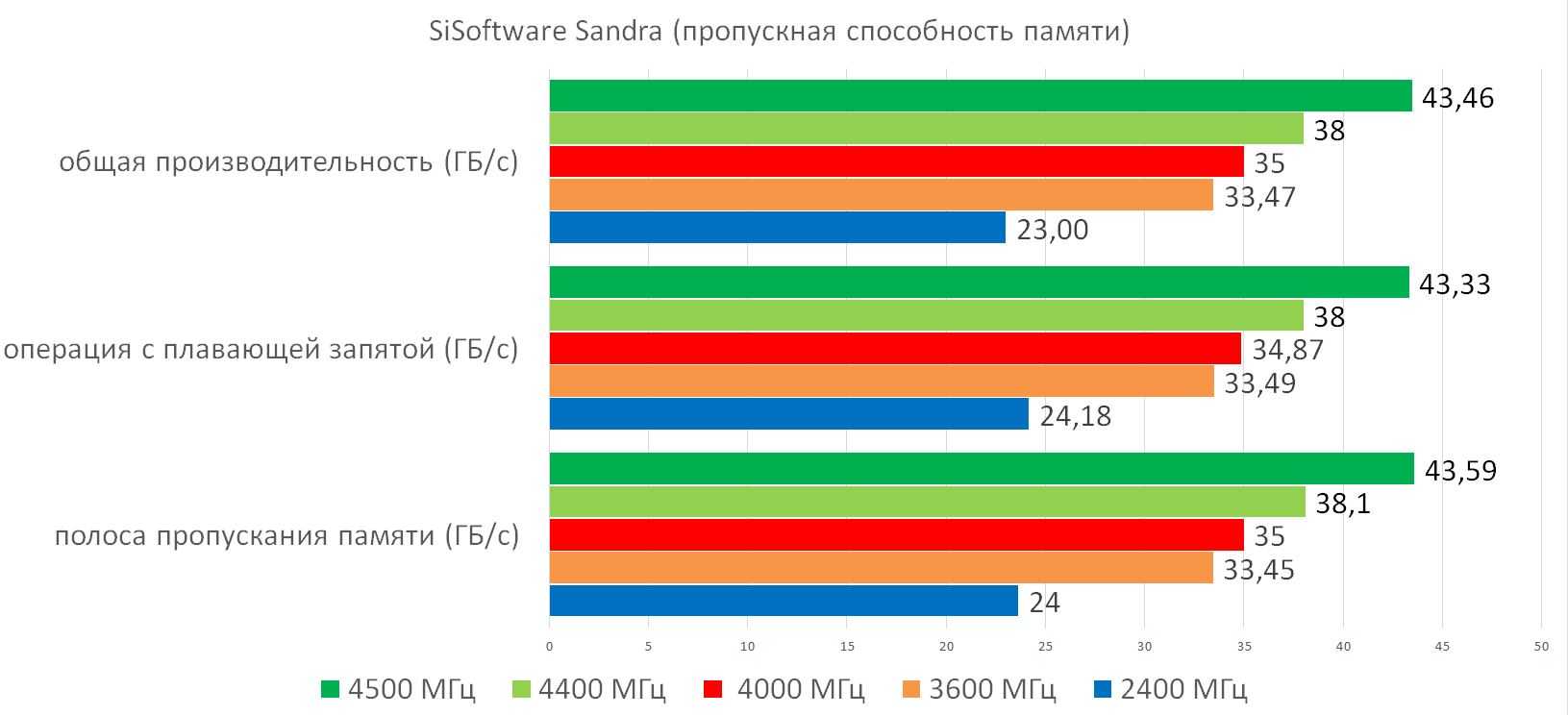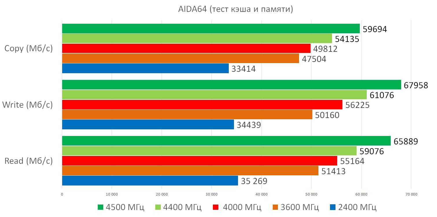 Синтетические тесты AIDA64 и SiSoftware Sandra показывают значительную прибавку результатов за счет увеличения частоты модулей памяти. Но это только синтетика, и она не отображает реальную производительность системы.