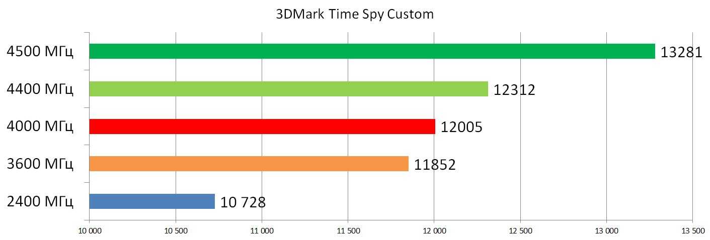 Еще один бенчмарк – 3DMark, также демонстрирует возросшую производительность CPU с ростом частоты памяти.