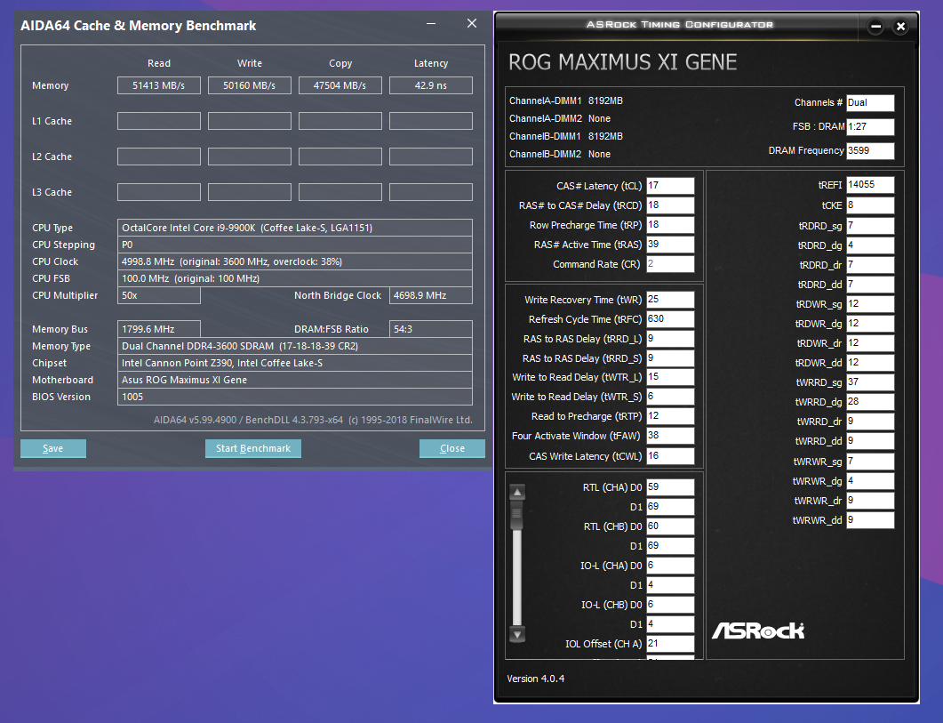 - Материнская плата: ASUS Rog Maximus XI GENE (версия BIOS 1005);