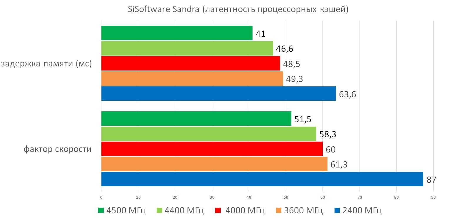 В тестах фактора скорости и задержек памяти меньшие значения являются лучшими.