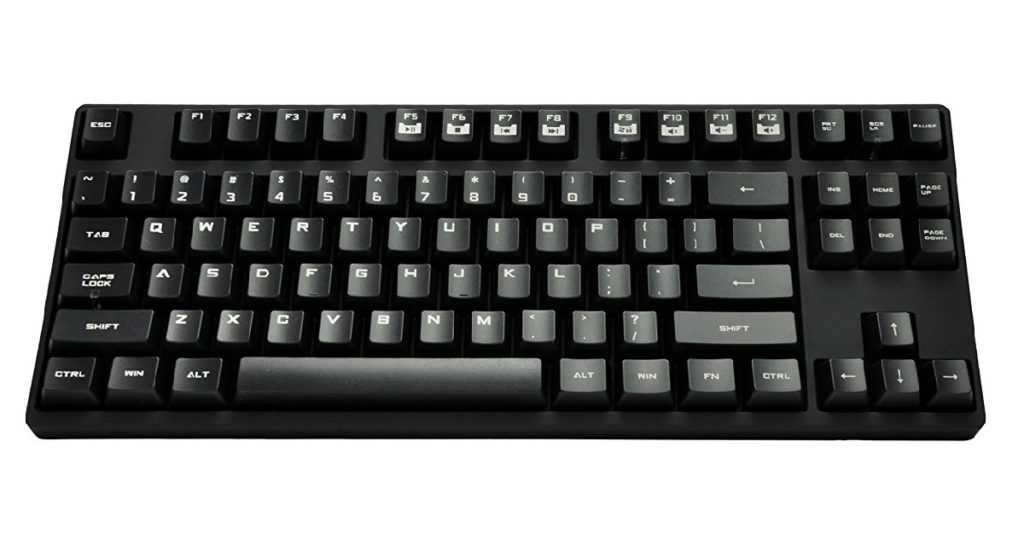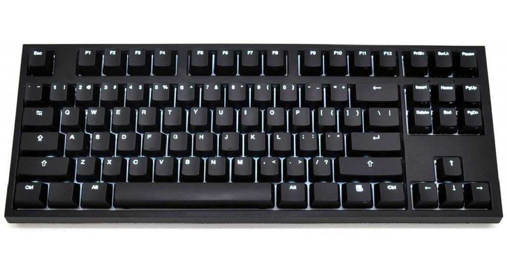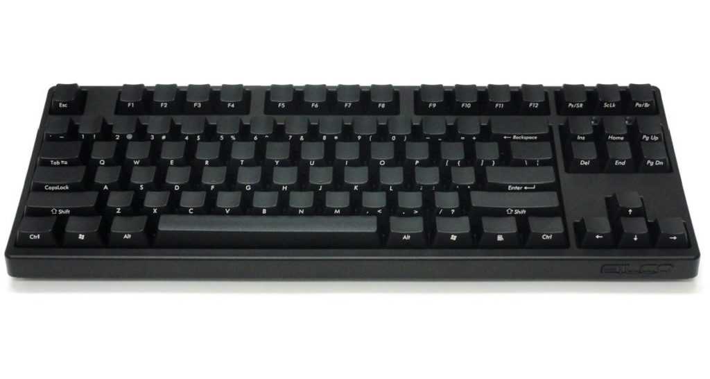 RealForce 87U – еще одна специализированная модель для работы с кодом. Символы на клавиши нанесены таким образом, что их практически не заметно. Что касается переключателей, то здесь используются знаменитые Topre Switches. Они обеспечивают мягкое нажатие и невероятно быстрое срабатывание. Клавиши изготовлены из слегка шероховатого, но очень приятного пластика.