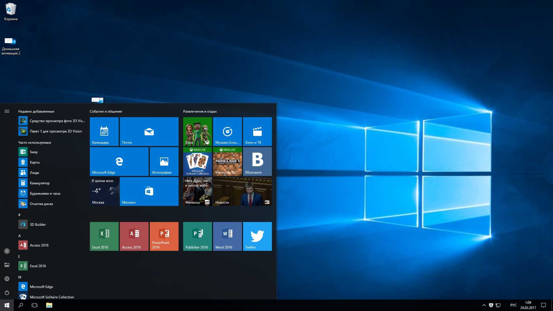- возвращение меню «Пуск»