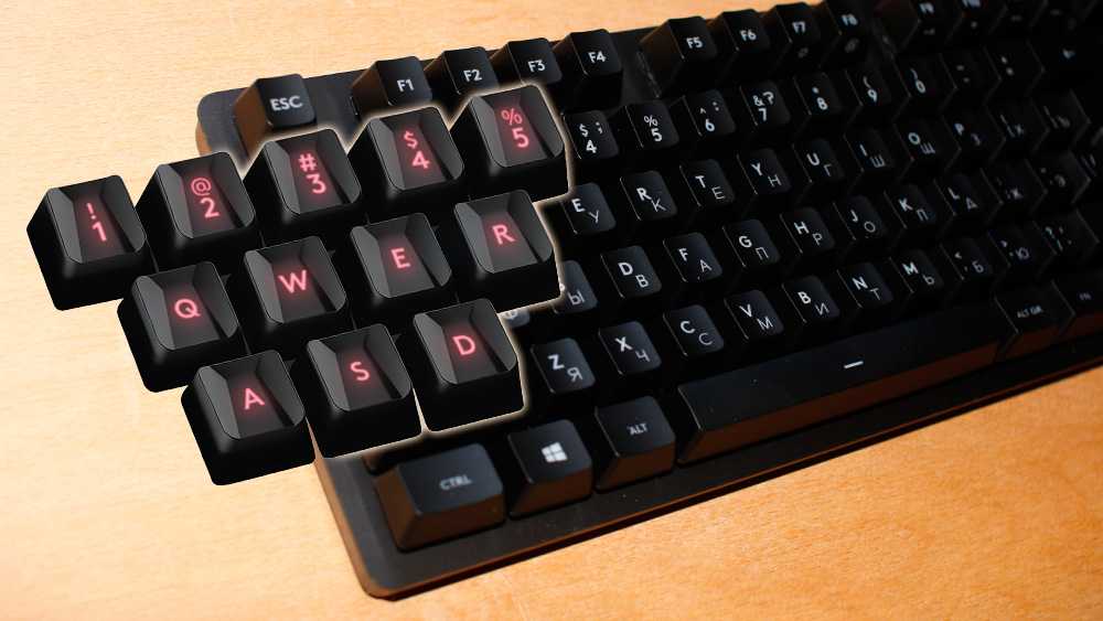 Что касается клавиатур с подсветкой, то гравировка — это самый подходящий вариант, позволяющий сделать символы прозрачными. Однако, опять же, на тёмных клавиатурах с выключенной подсветкой в реальности такие символы практически не читаются ни при каком освещении.