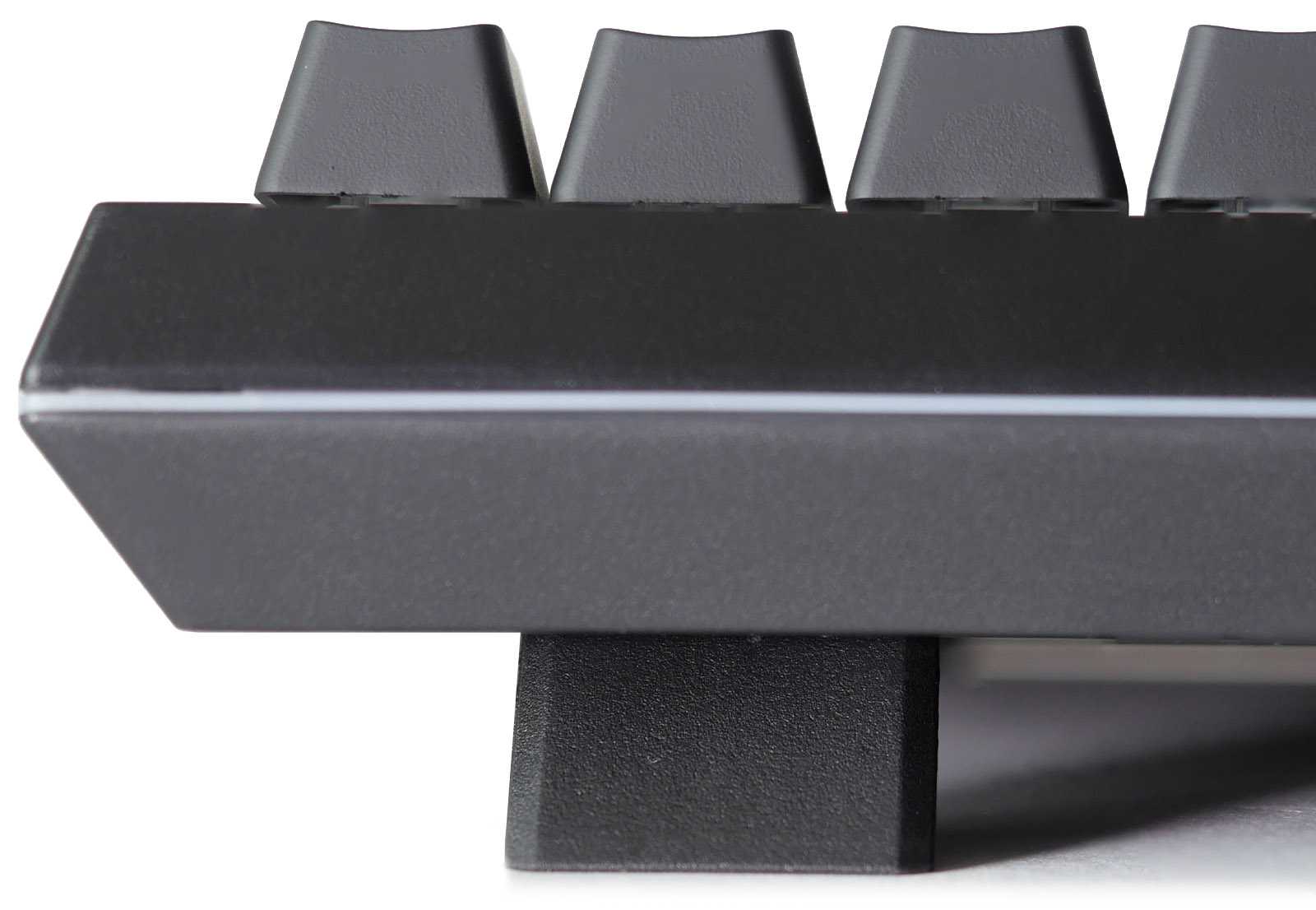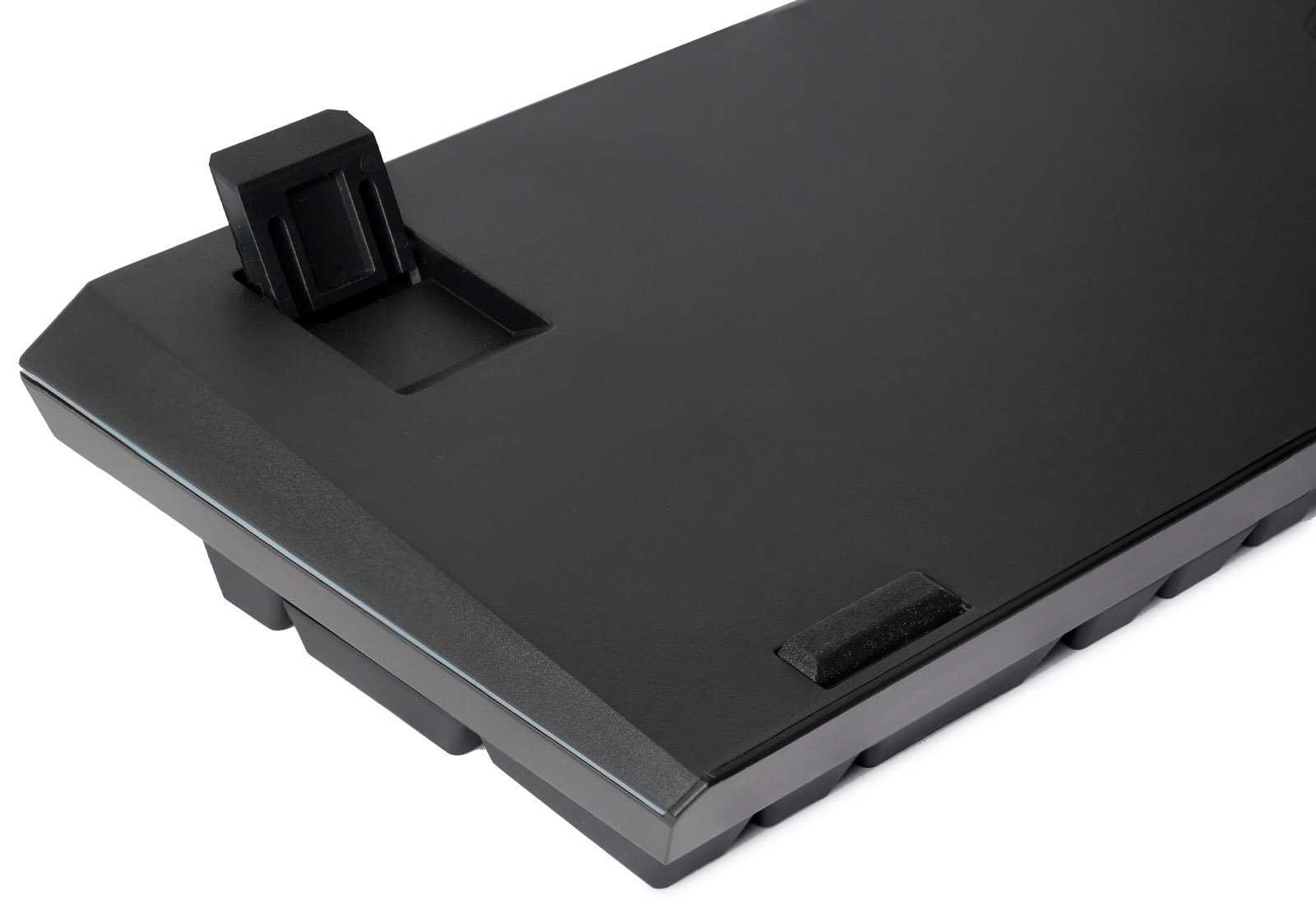 Наклон клавиатуры регулируется двумя откидными ножками на дне, которые имеют одно фиксированное положение и приподнимают заднюю часть на 14 мм.