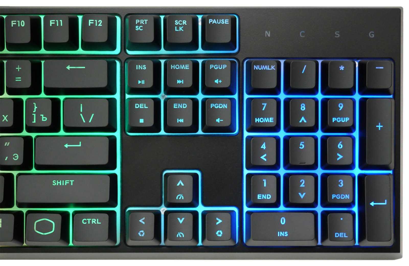 Для того, кто не хочет привыкать к передвинутым блокам клавиш, но жаждет добавить к своему ПК пару ярких девайсов, имеет смысл рассмотреть готовые наборы лаконичного дизайна. Среди недорогих современных комплектов примером будет Cooler Master MS110, который не только выдержан в достаточно строгом стиле с непременным налётом «игрового» RGB, но и предлагает клавиатуру с гибридными переключателями, которые по заверению производителя наступают на пятки механическим свитчам. Достаточно смелое заявление, но в бюджетном сегменте к этому не привыкать.