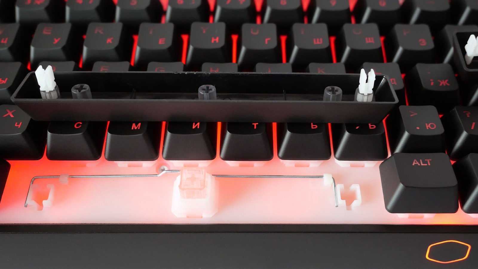 Под длинными клавишами установлены стабилизаторы, которые неплохо справляются со своей задачей, но на пробеле придают дребезжания резким нажатиям.