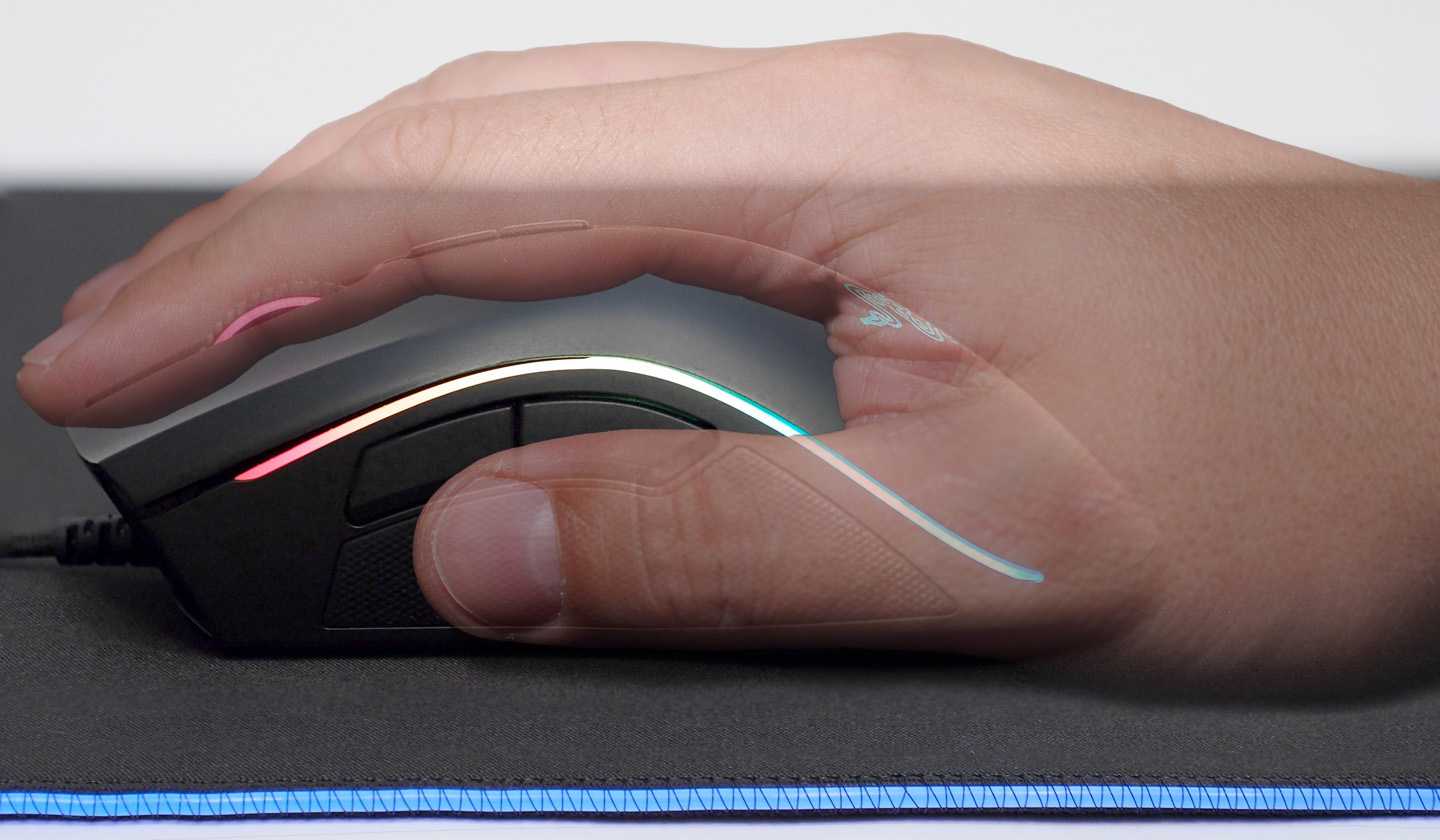 Razer Mamba отлично подходит под любые хватки, но лучшим вариантом будет «ладонь». Боковины оклеены цепкой текстурированной резиной для улучшенного хвата, со своей функцией они справляются отлично.