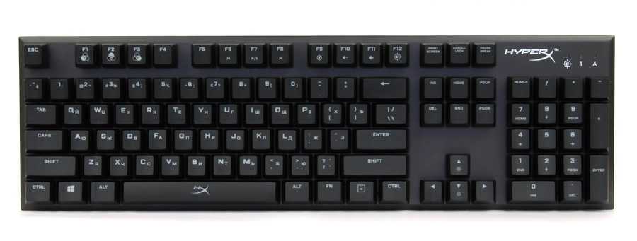 Как и в других клавиатурах HyperX, под широкими клавишами использован стабилизирующий механизм, это позволяет предотвратить заедание клавиш при нажатиях на них не по центру, но немного меняет их акустические свойства. На протяжении теста мы пользовались русифицированной версией клавиатуры, именно она попадет в продажу. Такой вариант оснащен длинным левым Shift и одноэтажным Enter.