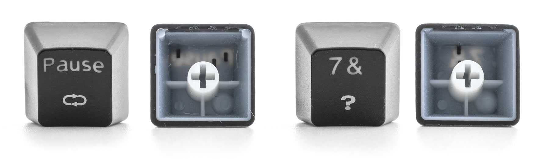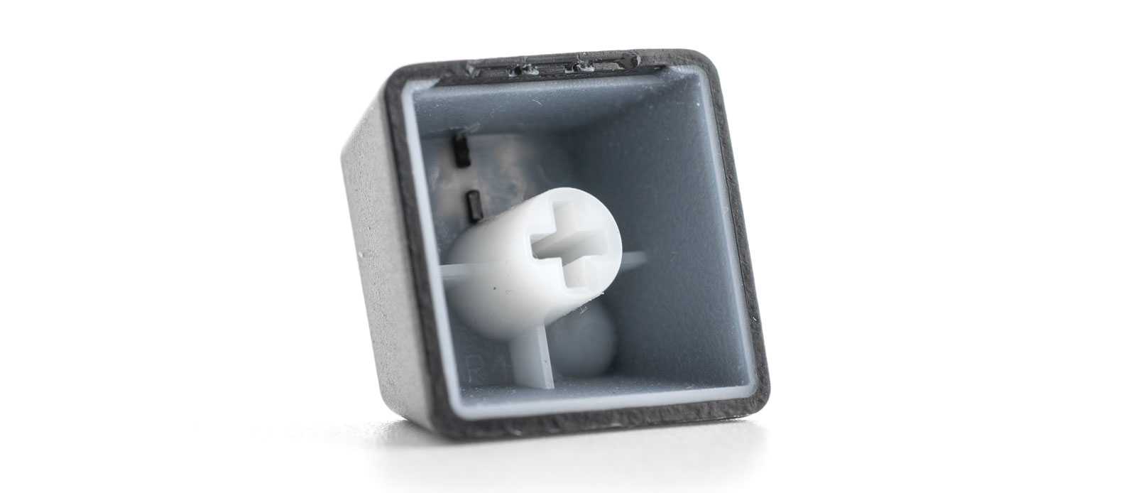 Двойное литье — это технология, при которой один пластик впрессовывается в другой. Таким образом, колпачки получаются более износостойкие, чем окрашенные, а символы тактильно не ощущаются.
