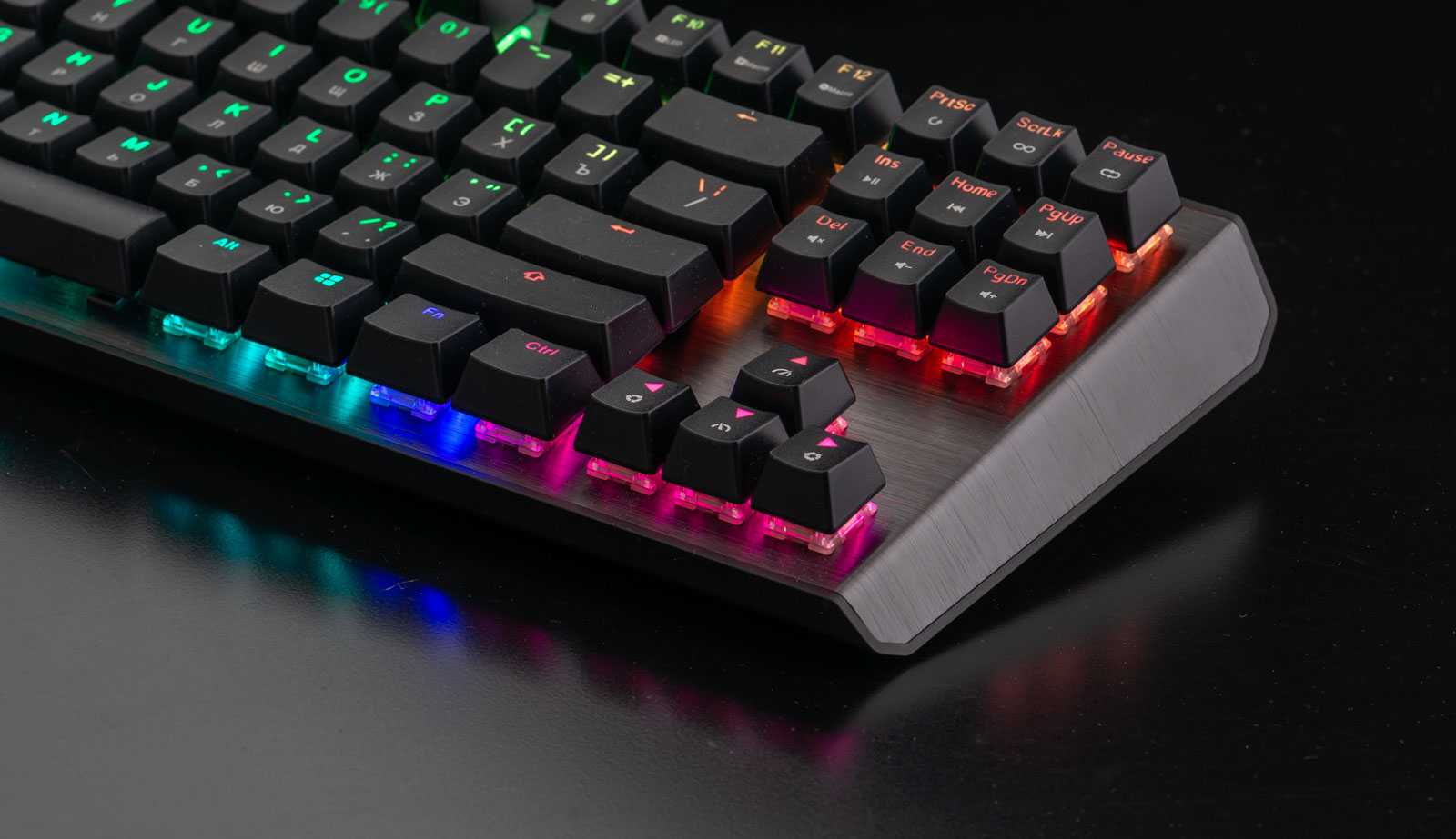Стабилизаторы под всеми клавишами хорошо смазаны и работают тихо — скобы не дребезжат, что редкость для клавиатур массового сегмента.