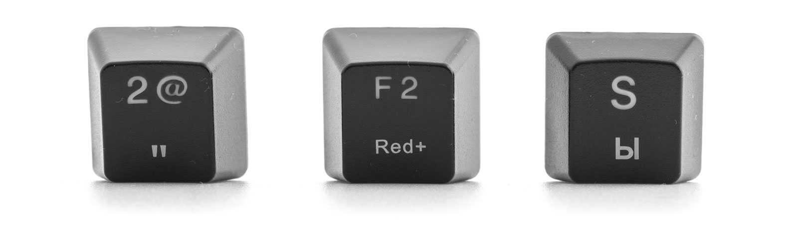 Проблема в том, что на такие колпачки после изготовления нельзя нанести дополнительные символы, которые будут подсвечиваться. Следовательно, для рынков, где требуется вторая раскладка, обычно используют окрашенные колпачки с лазерной гравировкой.