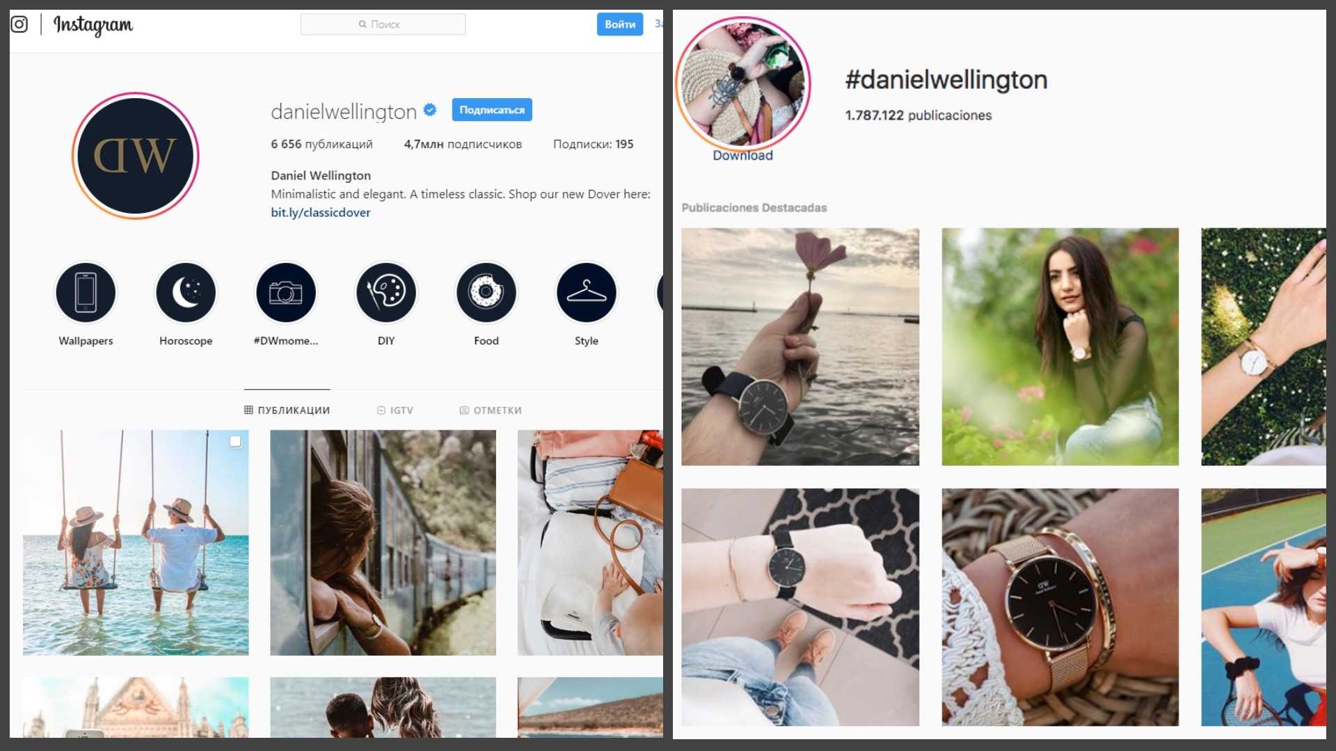 Стартовый капитал Daniel Wellington составлял $15 тыс., которых не хватало на традиционную рекламную кампанию на телевидении, радио и прессе. Тогда Daniel Wellington решил заявить о себе в только набирающей обороты платформе Instagram, ведь отличительные особенности часов бренда — ультра-простой дизайн и высокое качество – отлично вписывались в «фото-мозаику» соцсети.
