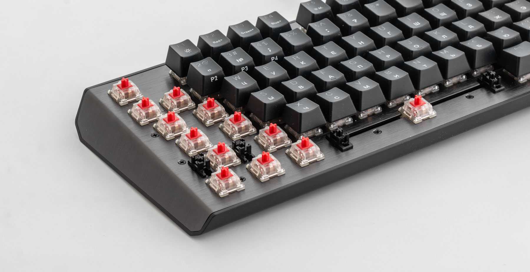 Клавиатура выполнена в формате скелетон — монтажная металлическая пластина является верхней частью устройства.