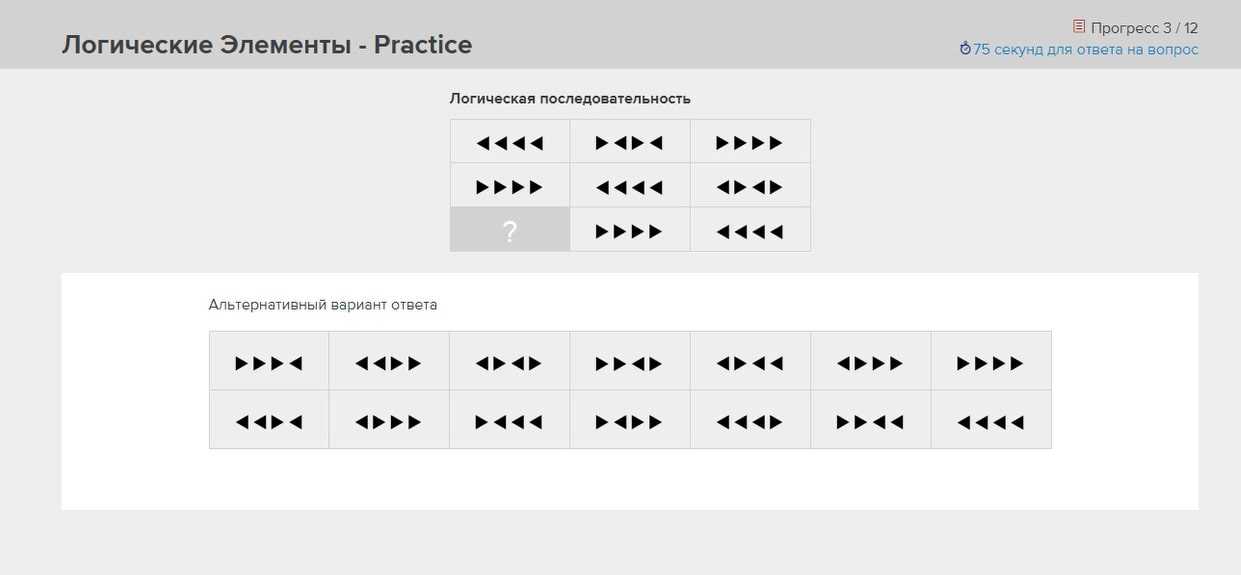 Хотя вариантов логических задач много, паттернов (схем), по которым меняются символы, ограничены. Чаще всего используются: