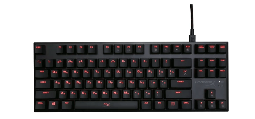 Популярная модель выполнена по типу TKL, поэтому не занимает много места на рабочем столе. Она является излюбленным решением игроков в CS:GO и Overwatch, поскольку для срабатывания каждой клавиши нужно применить минимальное количество усилий.