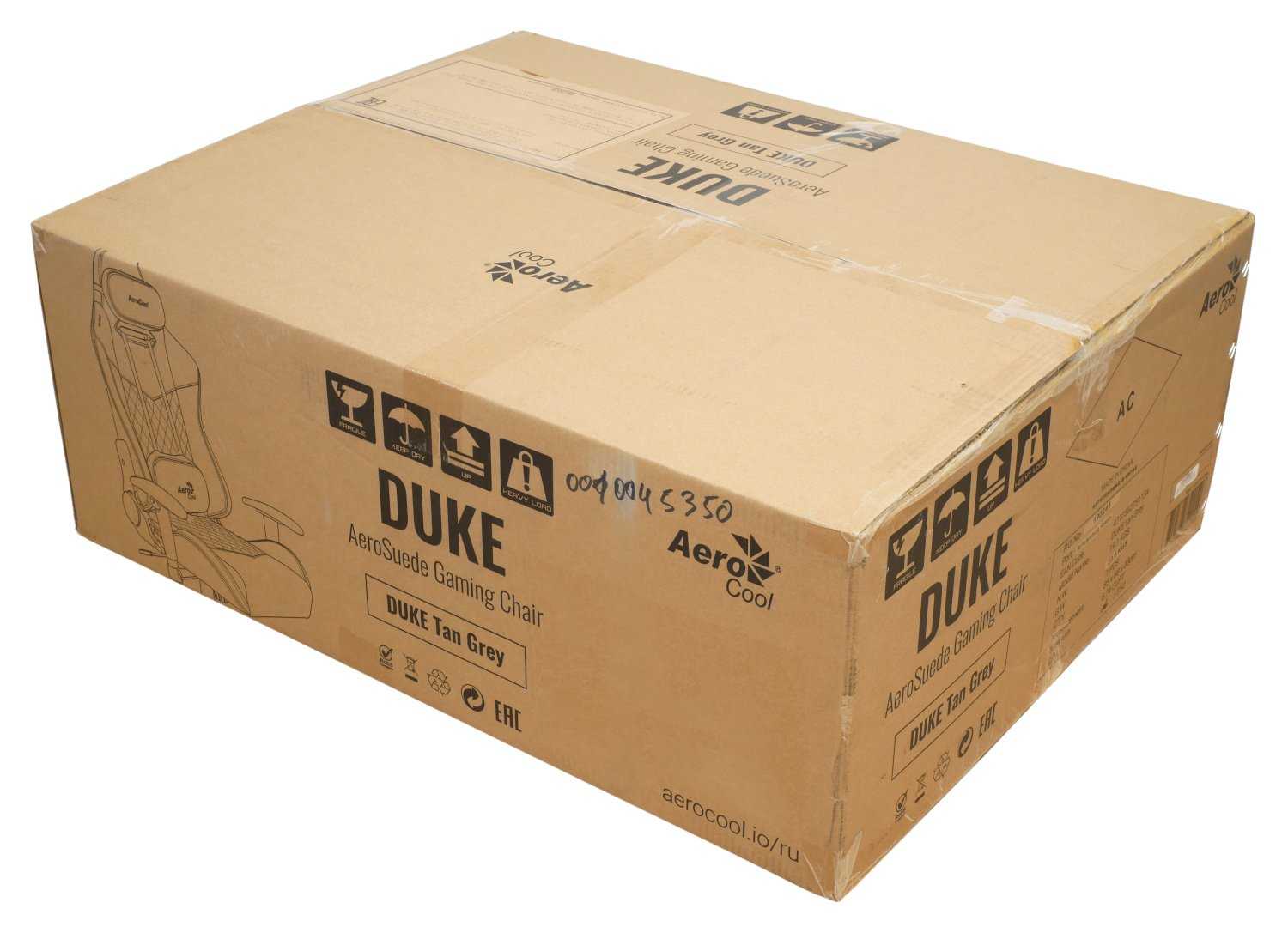 Кресло AeroCool Duke поставляется в габаритной картонной коробке. Транспортировочные отверстия не предусмотрены. Вес упаковки составляет 23 кг. Производитель не поскупился на полиграфии, отметив технические характеристики и схематичные изображения продукта, привел описание модели.