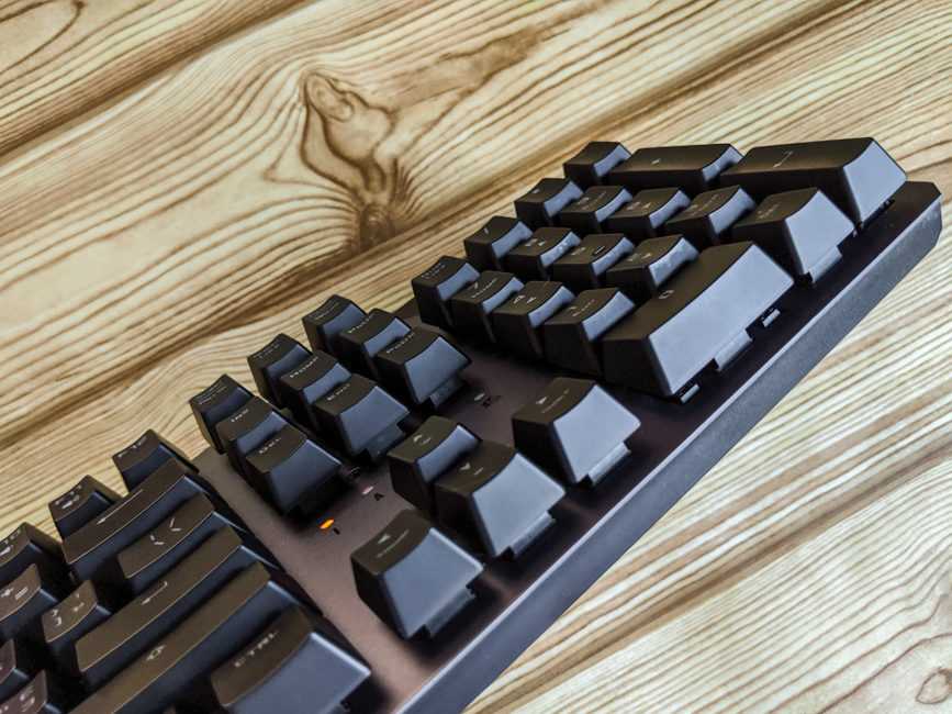 Наш образец клавиатуры с тактильными переключателями, то есть получаем тактильную отдачу и различимый щелчок. В случае с линейными — звука щелчка не будет. То есть если вас смущает громкий звук при использовании — это, стало быть, выход. В тактильных переключателях сила срабатывания составляет 50 г, ход клавиш — 3,55 мм, а высота срабатывания — 1,5 мм. Звук издается и назвать его тихим я не могу.