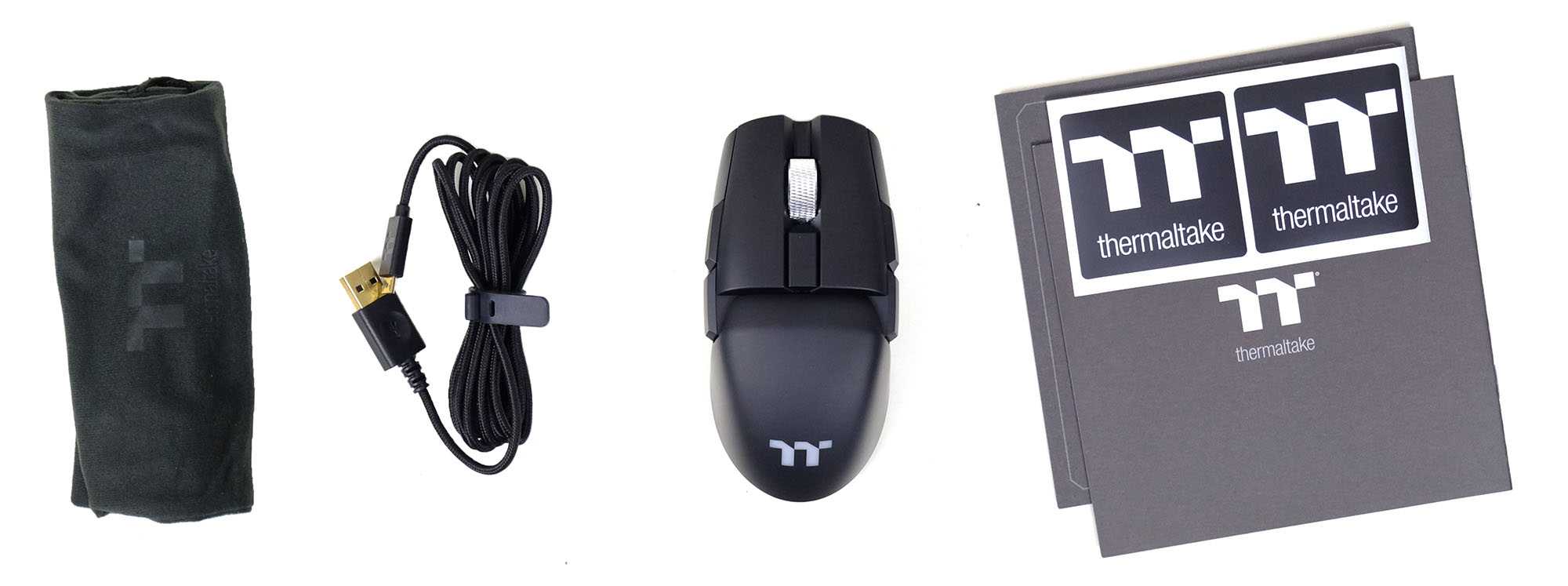 В комплекте к мыши ARGENT M5 идёт руководство пользователя, пара фирменных стикеров TT, кабель USB и сумочка для переноски. Ничего особенного, но комплект явно богаче стандартных.