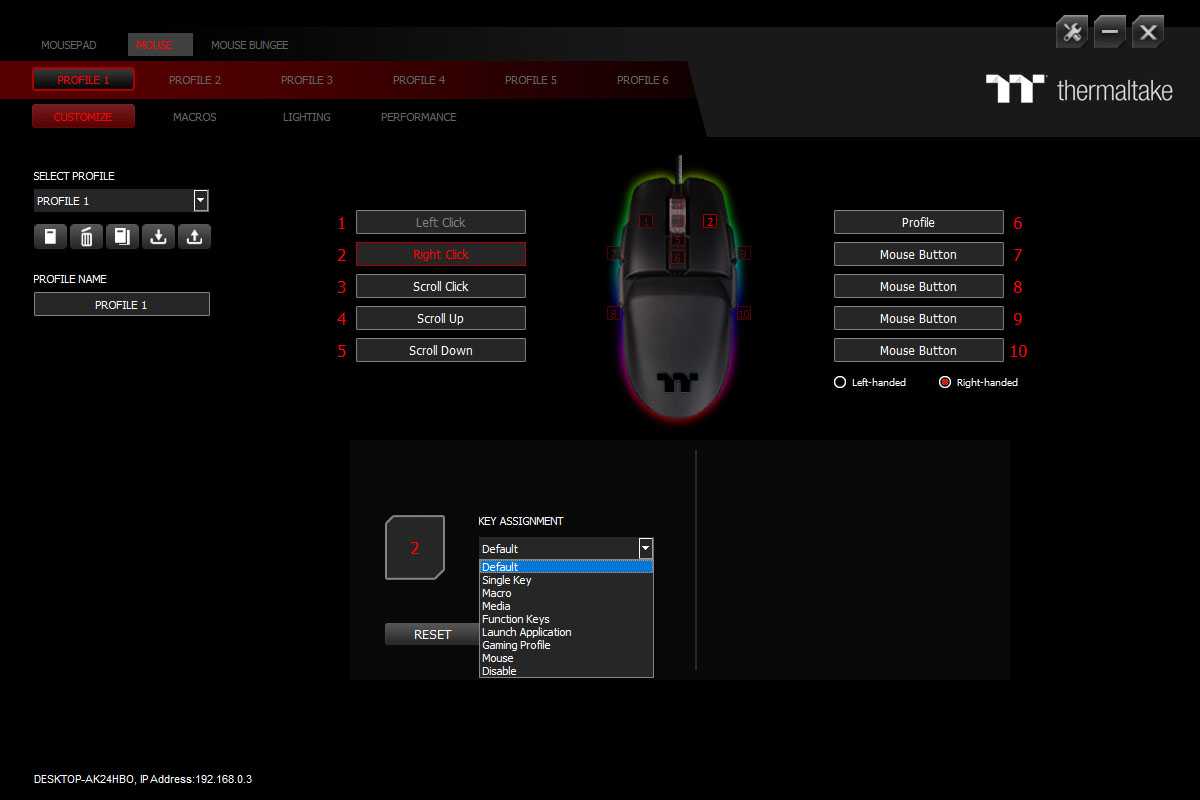 Все устройства линейки ARGENT Series могут управляться одной утилитой, а именно — TT iTAKE Software, которую можно скачать с официального сайта Thermaltake. Отвечает она как за настройку подсветки, так и за создание макросов и программирование кнопок для мышек.